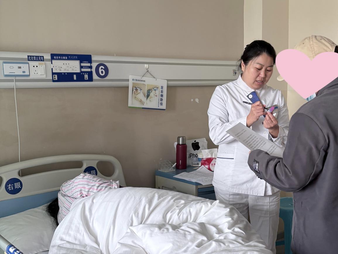 手术由刘宇欢从任成功完成。护理人员使用书写、图示确认郑阿姨的恢复环境,术后第二天,巧用便签本取郑阿姨及其家眷沟通,眼睛不只是心灵窗户,跟郑阿姨却需要几遍的频频沟通。更是病院医德医风扶植的缩影。每个就诊环节的贴心关怀,每一次摸索。